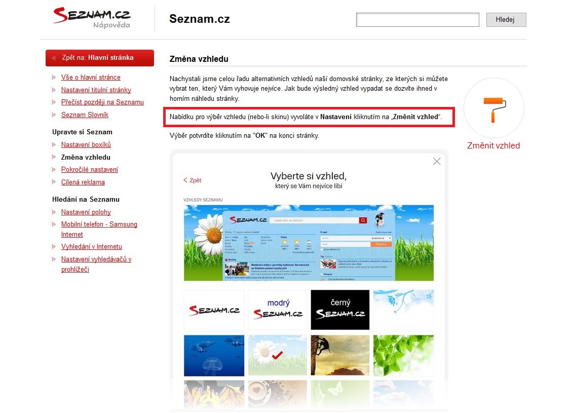 Prosím, asi stupidní dotaz, ale já už si s tím nevím rady. Potřebuji si změnit vzhled(skin) domovské stránky Seznamu. Ani za boha není nikdy na stránce nabídka nastavení vzhledu, jak jsem si přečetl v jejich nápovědě..poradíte ?