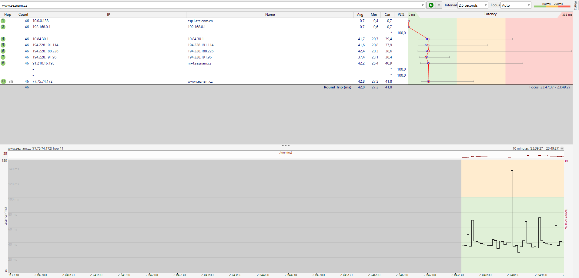 70 ms by melo byt jeste v pohode, proto je potreba log z konkretniho spojeni na servery, aby bylo