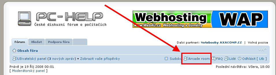 Účelem tohoto módu je určité zpřestření našeho fóra. Určitě se nechceme rovnat serverům zabývajícím se on-line webovým hrám (tomu odpovídá i množství her), rádi bychom vám ale nabídli i nějaké místo na relax....tím je nově Arcade room. Každý týden do Arcade roomu přibude nějaká ta nová hra...