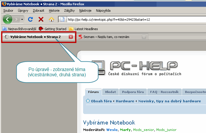 Zdravím všechny, došlo ke slibované úpravě titulků témat a hlavní strany fóra. Jedná se o optimalizaci SEO, která by měla vést k lepší použitelnosti webu a k lepšímu vyhledání webu. Na problém upozornil Myloš, tímto mu děkuji. Níže uvádím ukázku, co přesně se změnilo: