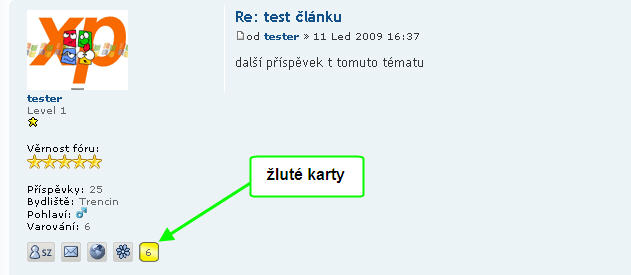 • udělení žluté karty (varování) uživateli, který nějakým způsobem porušuje pravidla fóra