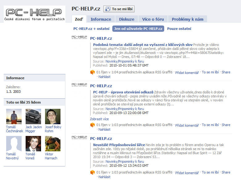 Owner to vystihl přesně, FB jsme zavedli pouze jako součást propagace našeho fóra, další forma jak někoho oslovit, k žádnému širšímu prorůstání FB s fórem nedojde ;-)