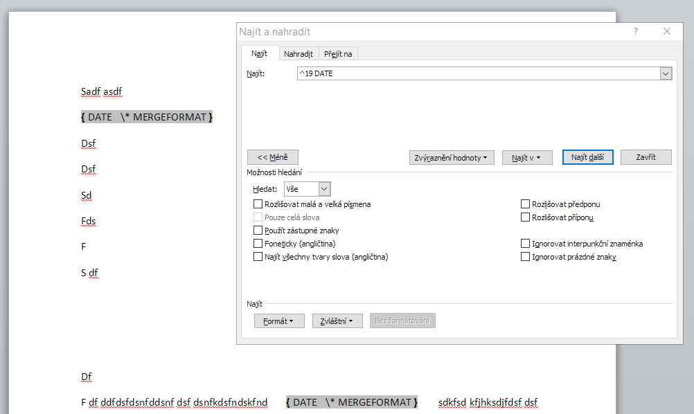 Word - hromadné odstranění "pole datum"