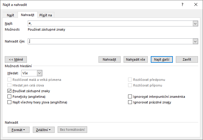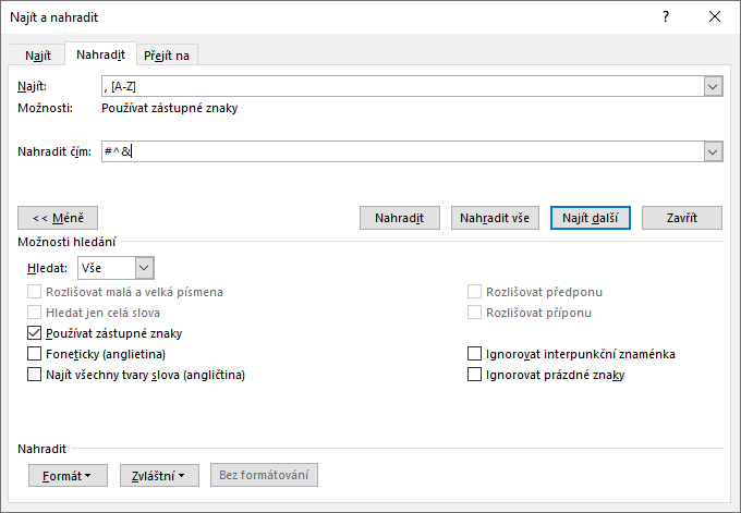 Pomoc se "skriptem" ve Wordu (Find and replace)