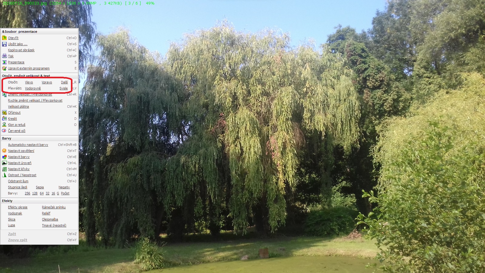 Ujasni si co chceš - uvědom si rozdíl mezi otočením - tj. rotační pohyb v rovině - a překlopením - tj. záměna horního a dolního okraje při zachování levé a pravé strany. Návod v předchozím příspěvku umožňuje pouze otočení. Otočení i překlopení umí např. program FastStone.