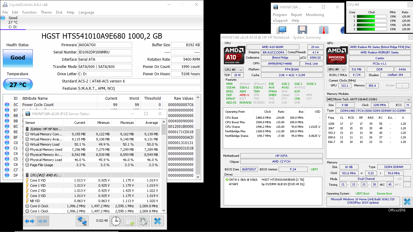 Procesor : AMD A10-9600P RADEON R5 10 COMPUTE CORES 4C+6G 2.40 GHz