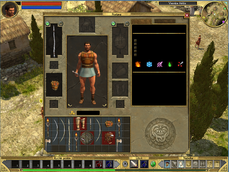 Ahoj koupil sem si hru Titan Quest a mám takový problém. Ve hře se mi neukazují správně věci hlavně v inventáři. Na 1. obrázku je jak to mám a na tom druhém jak to má být. Jinak hra běží v pořádku žádné lagy nebo něco takového.