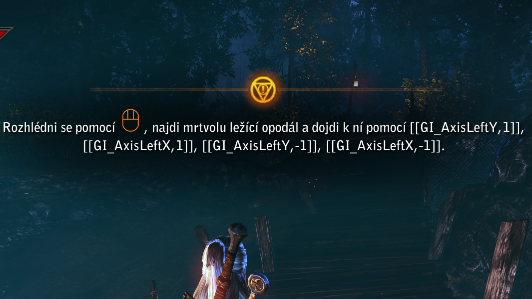Mám problém ve hře Zaklínač 2 (Enhanced Edition), že mi nefunguje chození. V tutoriálu mi to píše nějaké podivné znaky, které bych měla použít k chůzi (viz příloha), ale absolutně nechápu, jak se to tam dostalo a co to znamená. :D