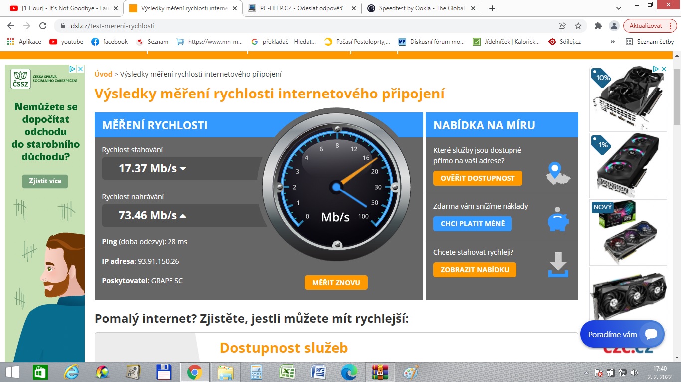 Ani nevím co tam teď máme za rychlost.... 10mb??