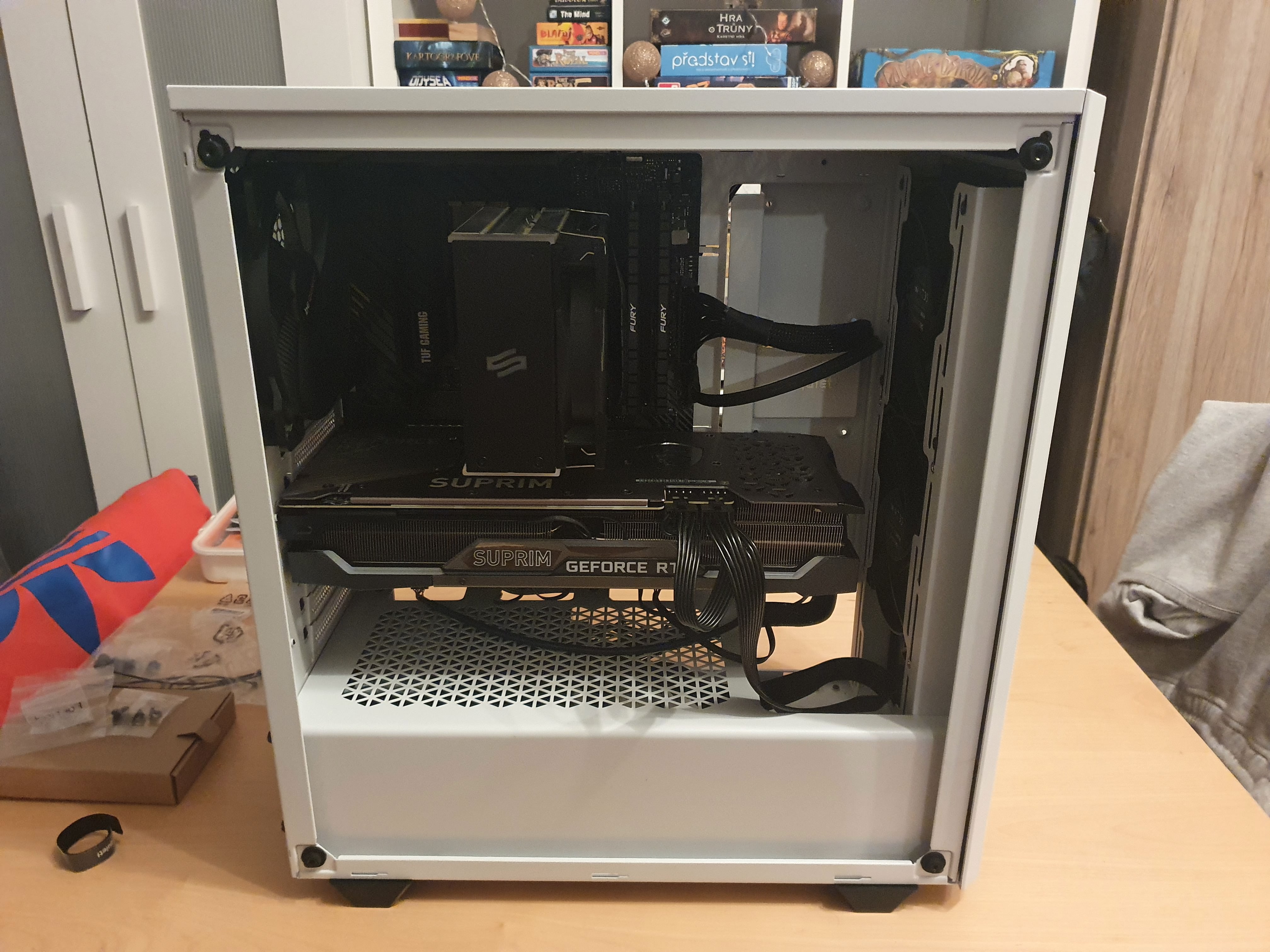 Nápis na zdroji ja na každé straně otočený jiným směrem a momentálně je umístěný tak, že nasává vzduch právě z toho prostoru pod skříní. Ve videu podle kterého jsem stavěl to bylo ukázáno takto. Ale jako ano, taky jsem si říkal, jestli to ze spoda dokáže brát dostatečně vzduchu. Takže byste ho určitě přetočil?