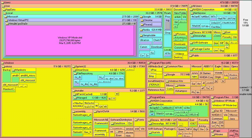 Já mám na 120GB SSD jen Win7, tak 100 Mb v dokumentech, virtuální XP, programy všechny narvaný na druhým disku a stejně mám SSD neustále přeplněný. Jak něco přesunu na D a udělá se mě místo, zas je to po pár dnech pryč. Naposledy se mě tam narvala proti mé vůli istalace pro Win10. :evil: Už si s tím nevím rady. :huh: