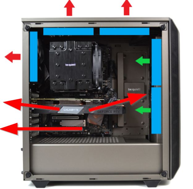 Idealni by bylo, kdyby ten ventilator co je nahore vzadu byl na zadni stene pod grafickou kartou,