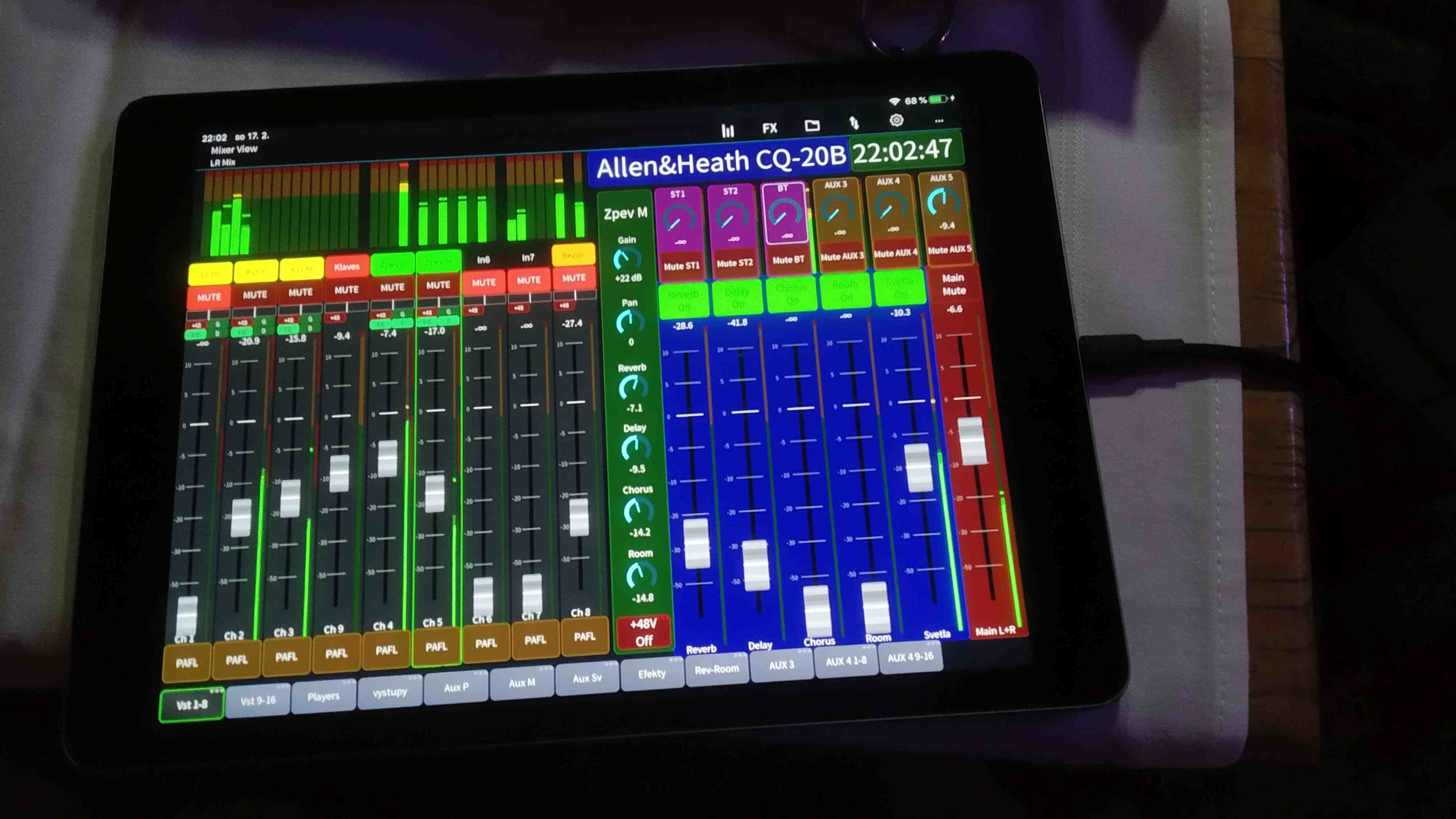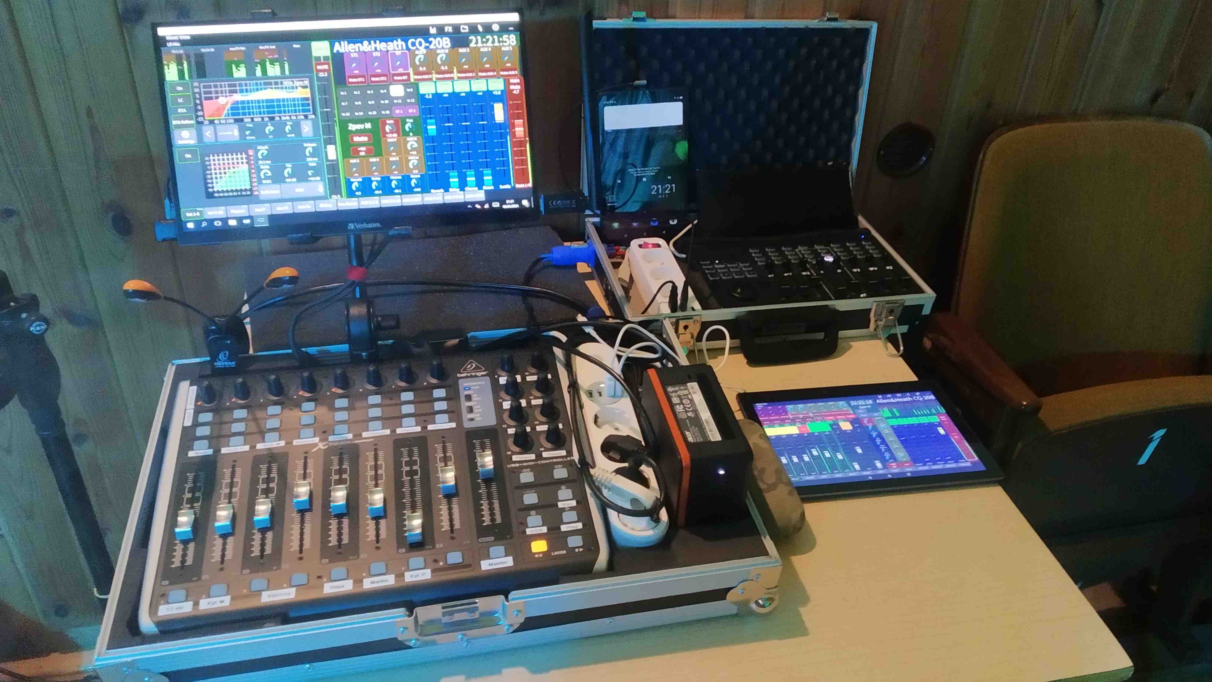 Pro občasné cesty za kulturou jsem si obstaral nový digitální mix (A&H CQ20-B) a trochu vylepšil bezdrátové spojení, napájení a ovládání pomocí aplikace Mixing Station :-)