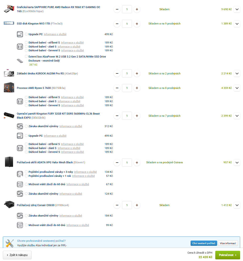 Nové komponenty v Mironetu cca 20k za 8i jádro a se současnou 5060.