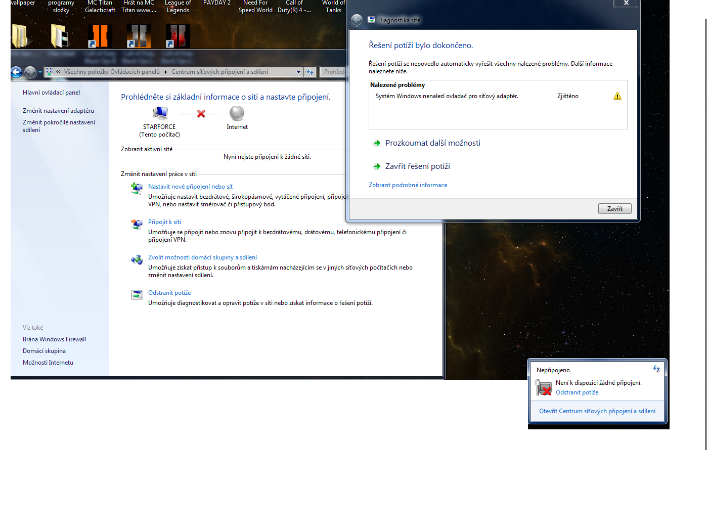 tak jsem si rozklikl tu ikonku a tam bylo napsáno "systém windows nenalezl ovladač pro síťový adaptér" ale já nevím kde mám stáhnout ten ovladač na stránkách výrobce jsem nic nenašel. nnepomůže mi někdo???