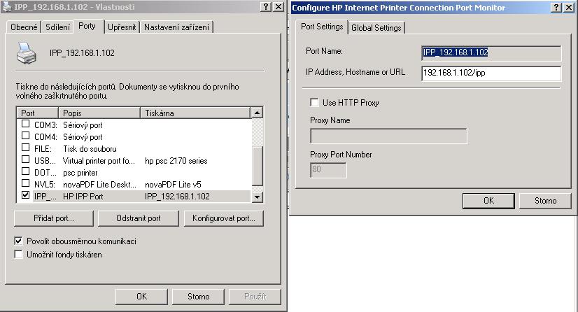 Ping na tiskárnu funguje, když jsem zadal v prohlížeči IP tiskárny, vyjela stránka s nastavením. Problém s instalací tiskárny: Přes ovládací panely->přidat tiskárnu->síťové tiskárny to nešlo. Tak jsem stáhl nějaký program HP Internet printer connection. Zadal jsem tam IP adresu a typ tiskárny a něco to vytvořilo. Tiskárna v ovládacích panelech přibyla, ale nechce tisknout - stále ukazuje off-line.
