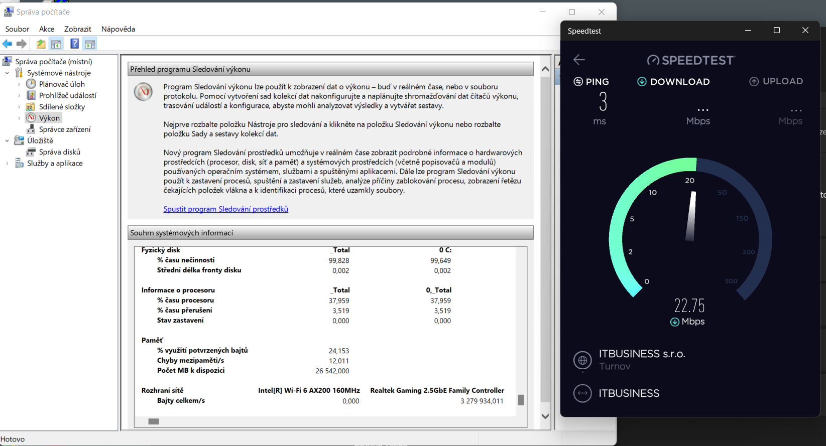Speedtest nám jako aplikaci ale webový ukazuje stejně. Edge totéž.