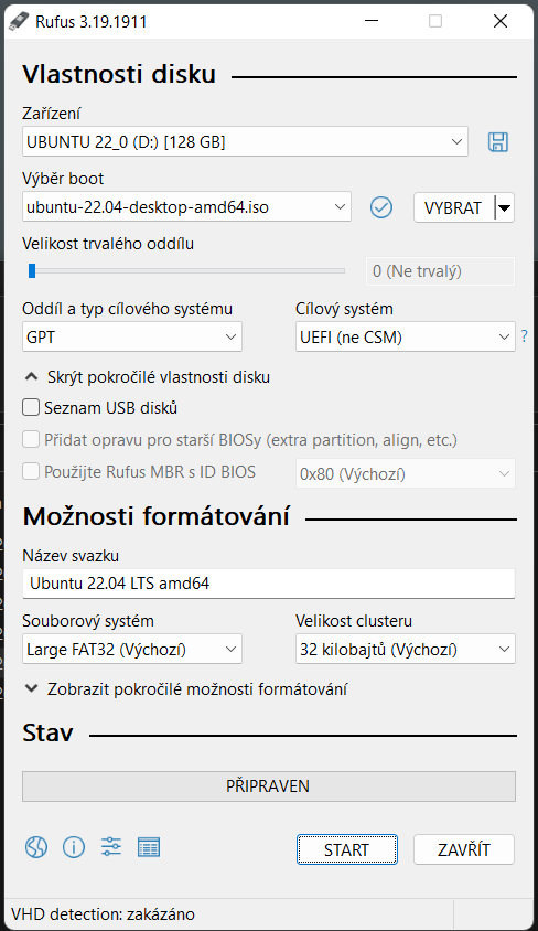 Ani přes Rufus ani přes Unetbootin. Nabootovalo, ukázalo se logo Ubuntu, potom černá obrazovka mnoho minut - konec.