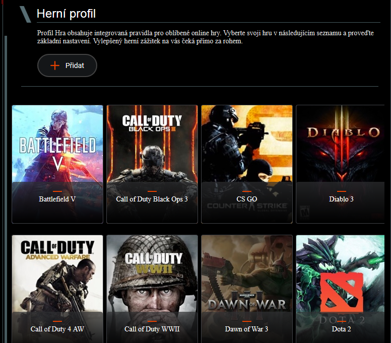 Co u jiných routerů nenajdete je možnost nastavení routeru přímo pro hry. Stačí si jen zvolit příslušnou hru: