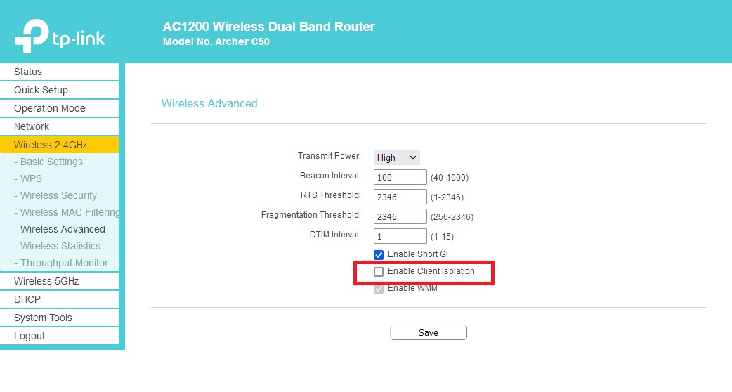 Zkontroluj na C50 AP isolation. Ten test od rikiho muzes zkusit potom.