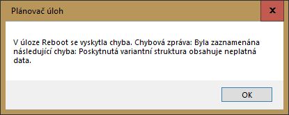 Dobrý den, potřeboval bych vypnout automatické probouzení počítače pro událost \Microsoft\Windows\UpdateOrchestrator\Reboot, po odkliknutí OK se však vždy objeví toto okno: