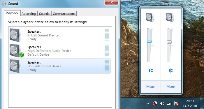Přehravání zvuku současně ze dvou USB repro(win7)
