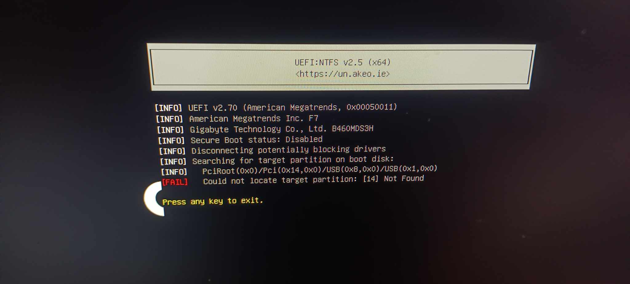 Nepodepsany EFI loader - je potreba vypnout SecureBoot.