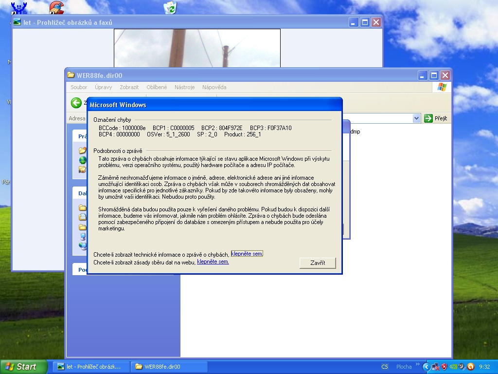 nedávno jsem reinstaloval Windows XP a počítač se neustále vypíná. Vytáhl jsem nějaké screeny a minidump files. Vůbec nevím co s tím. Zprávy o chybách jsem viděl alespoň 2 různé - stihl jsem oscreenovat a po "neodesílat" naskakovali pořád dokola a dokola, dokud se počítač po chvíli opět nevypne.