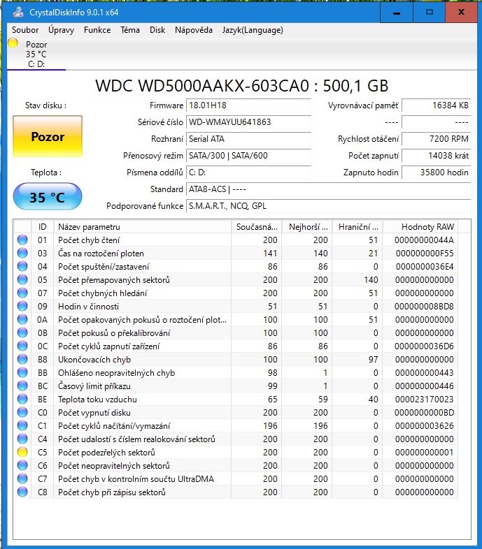 Zde je obrázek z Crystal Disk Info:
