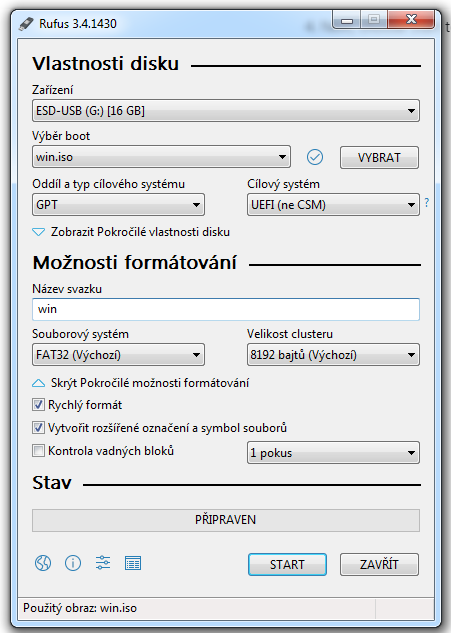 mas flesku vytvorenou jako GPT nebo MBR? asi GPT, kdyz si to delal pres ten tool