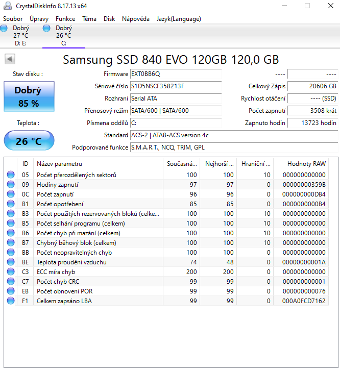 Riki22 - Jakože ty to myslíš tak, že z nějakého důvodu, problému, nejde nainstalovat ta nejnovější aktualizace, takže by ze stejného důvodu nemusel jít ani přeinstalovat ten Windows celý? To by dávalo smysl, no.. Dobře, stáhnu ten Crystaldiskinfo, ale co s ním? To po mně chceš, abych ověřila disk, že je v pořádku, aby byla jistota, že reinstalace dopadne úspěchem?
