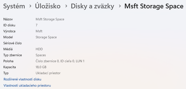 Ešte raz sa preklikaj cez Nastavenie-Systém-Úložisko-Rozšírené Nastavenie úložiska-Disky a Zväzky.