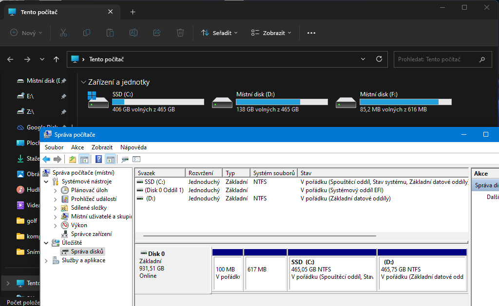 Disk F: nejak musel vzniknout. Ale ta instalace je nejaka potapana, ze to neukazuje ani spravne popis oddilu.