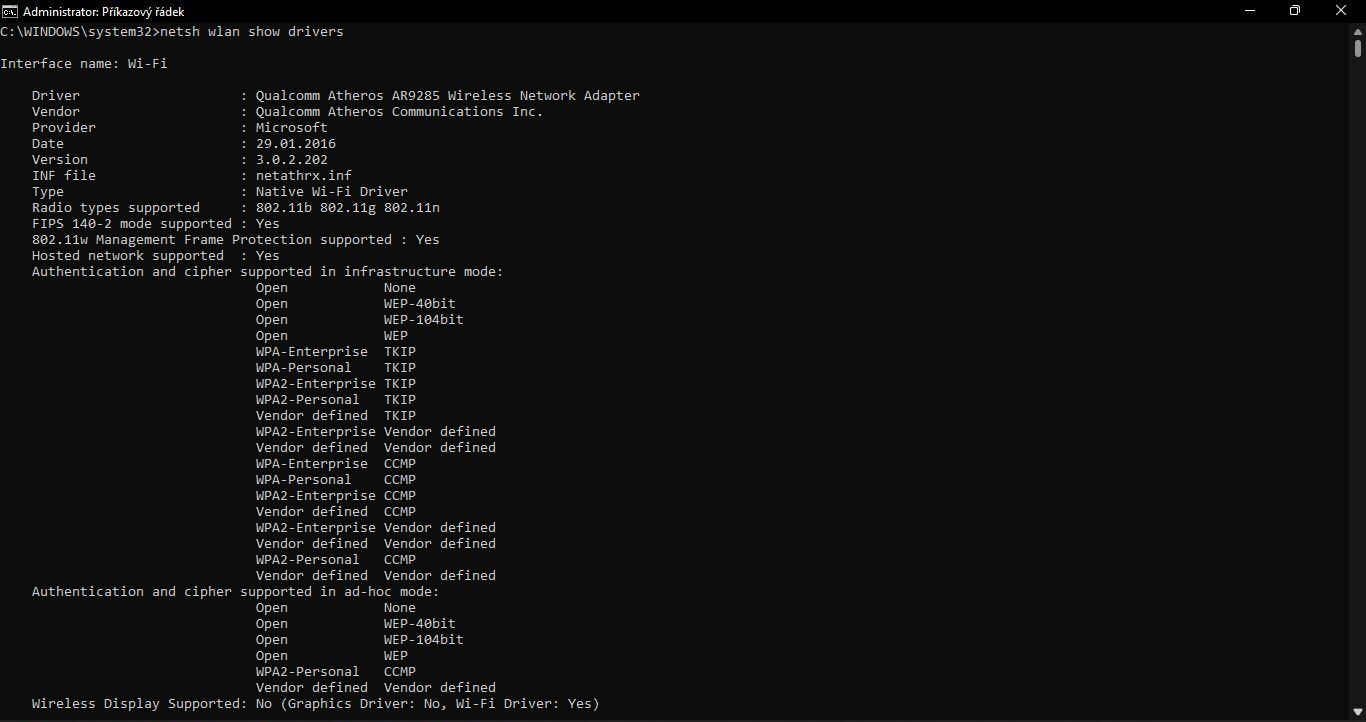 Spust z prikazove radky nasledujici prikaz a vloz sem vysledek (cely):