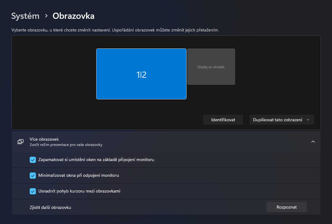 V počítači to píše že se displej nenašel, ale když rozkliknu pokročilý info, tak tam televizi vidím.