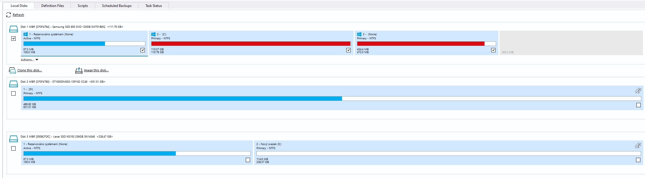 2. Jak zdrojovy, tak cilovy disk jsou prilis male - Windows bych nedaval na disk mensi nez 512 GB. 30% SSD by melo zustat vzdy volne.