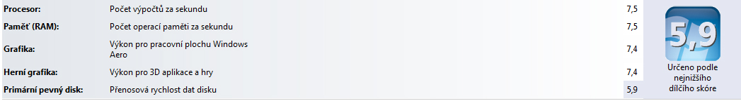 tak teď jsem na 3krát vyhodnocoval výkon PC tím jak je ve Windows(Ovládací panely\Všechny položky Ovládacích panelů\Informace o výkonu a nástroje)