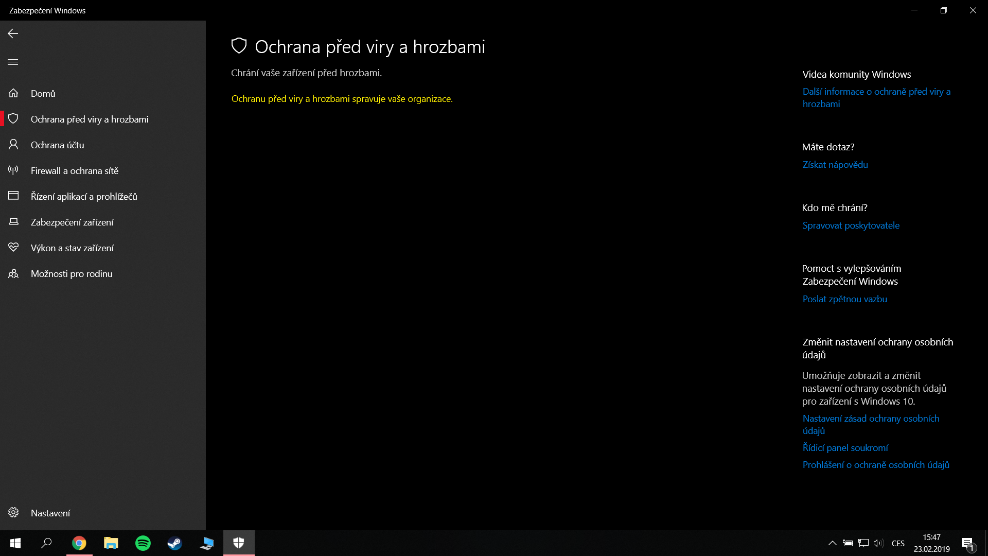 používal jsem AVG free antivirus a po odinstalování mi windows hlásí, že "ochrana před viry a hrozbami spravuje vaše organizace".