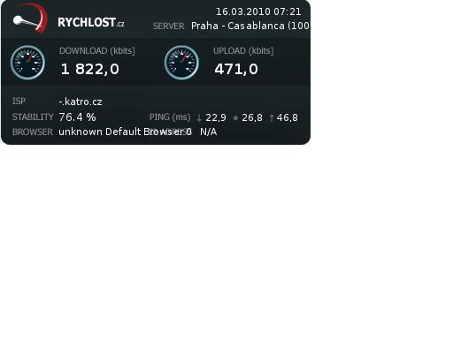 Já nic nestahuju /vyjímečně nějakej soft/ a nic neuplouduju s vyjmou nějakých e-mailů, takže ta rychlost je relativně postačující, ale mění se to každý den a problém je se stabilitou která se někdy pohybuje mezi 30=0%, ale to je problém někde na "trati" a s tím nic neudělám.