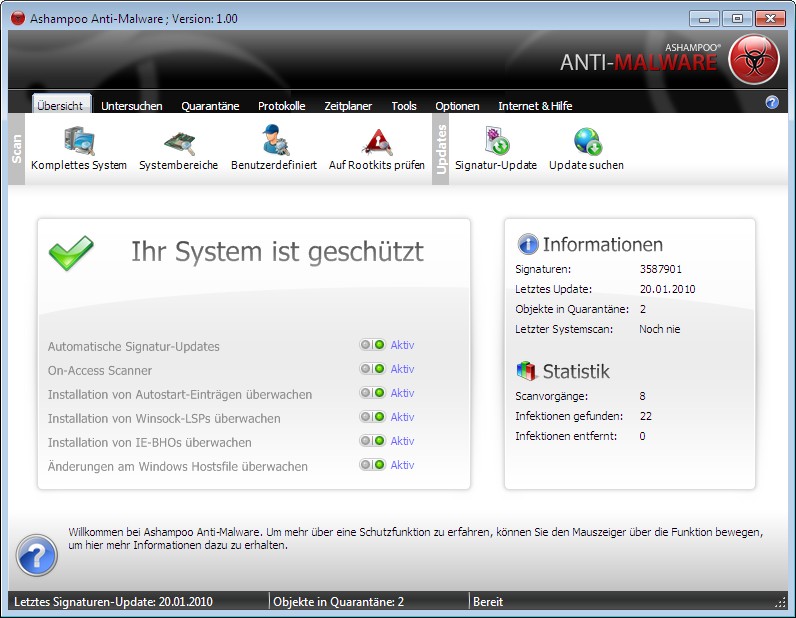 Oficiálního nástupce Ashampoo AntiSpyWare a Ashampoo AntiVirus byl vyvinut od základů a kombinuje to nejlepší z obou technologií v jednom řešení.
