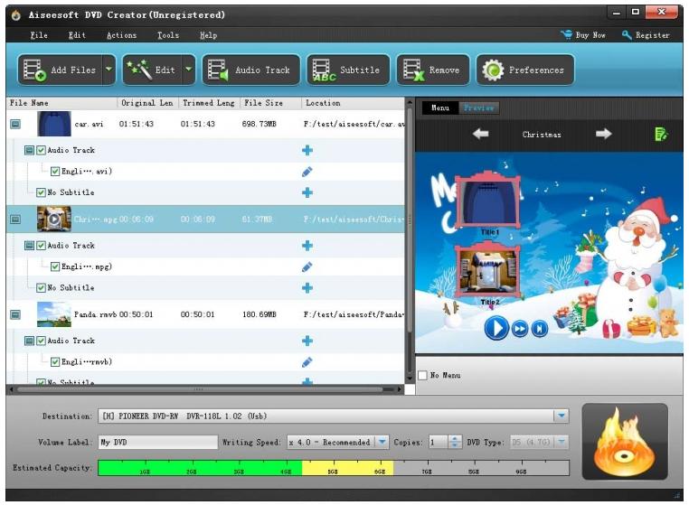 DVD Creator poskytuje nejlepší způsob, jak vytvořit DVD. DVD Creatorem můžete udělat DVD ze všech populárních video souborů, jako AVI, MPEG, DivX, TS, MTS, DV, VOB, WMV a MP4 atd. Vypalování DVD nebo ISO souborů je k dispozici také.