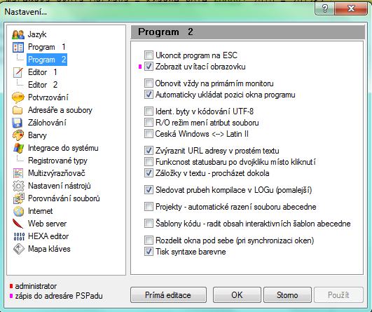 menu Nastavení -> Nastavení programu...
