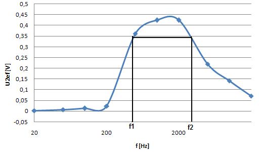 ten vztah pro zjištení pásma který napsal Magnat se dá odvodit přes integrály a je to 1/(odmocnina ze 2) a je to těch 0,707 , jak jsi psal cca 70% max. hodnoty ... ale já v tom grafu to udělal tak, že jsem si udělal novy sloupec tabulky (prenosova charakteristika) je to 20*log (U2/U1). z toho vyslo ze max je -13dB, a tady to neni pokles o 0,707 ale o 3dB. takze -16dB a tam kde protíná charaktristika -16dB jsem vynesl pro jaké frekvence a z toho je ta šířka