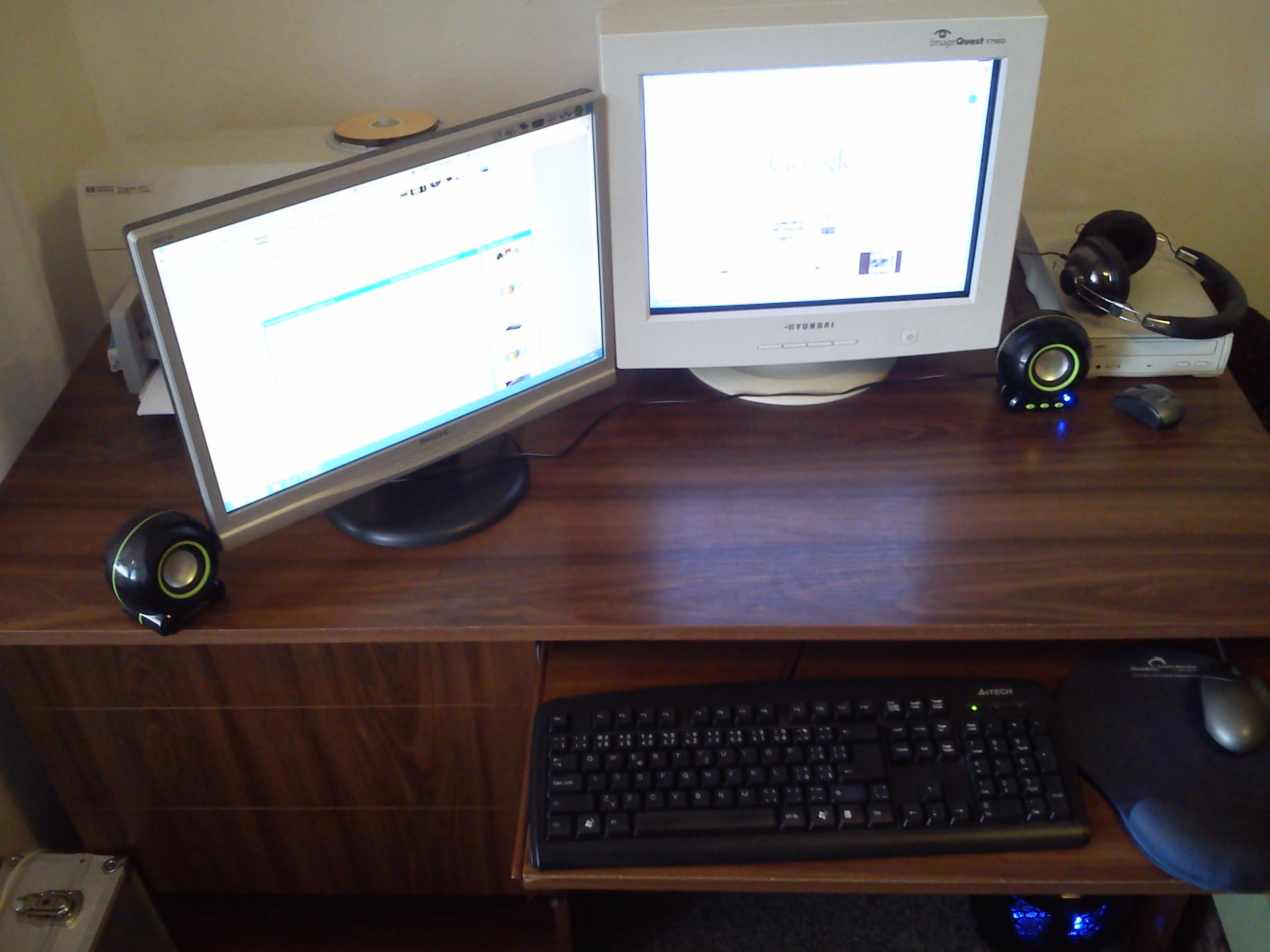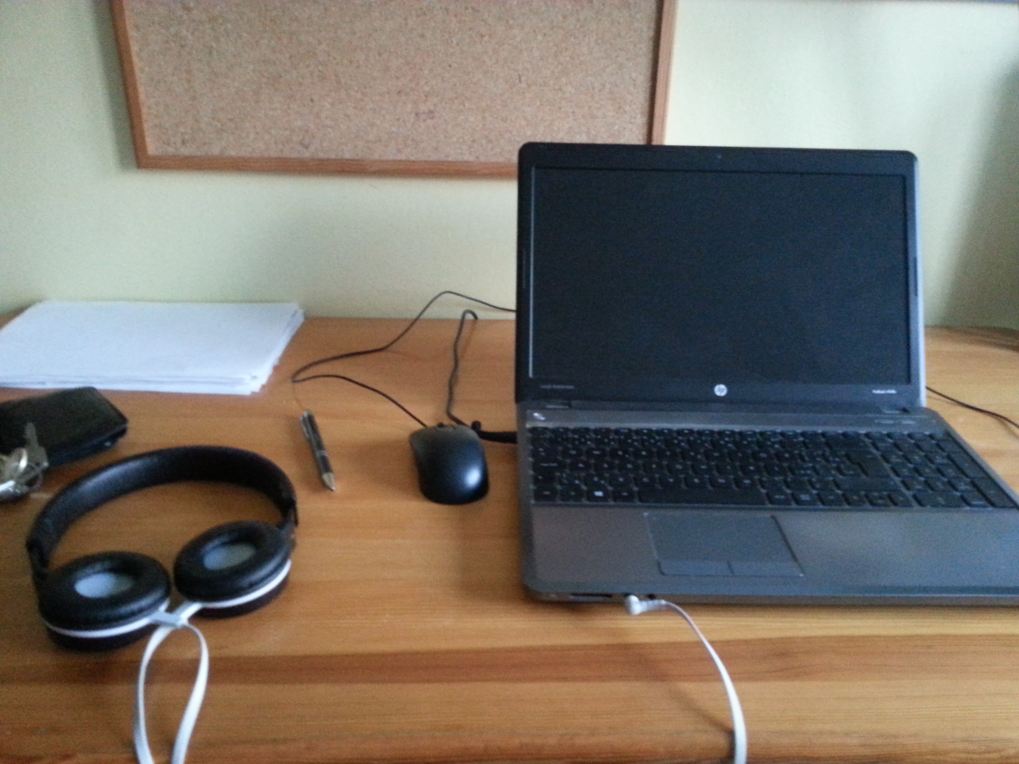 Tak změna bydliště a zároveň nové doupě. Ještě to chce držák na sluchátka. Myš na foto už je v šuplíku, bezdrátový mrkvosoft se furt nějak trhá