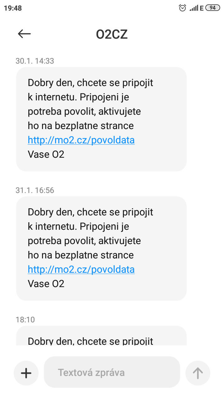 Opakující se sms pro data od operátora