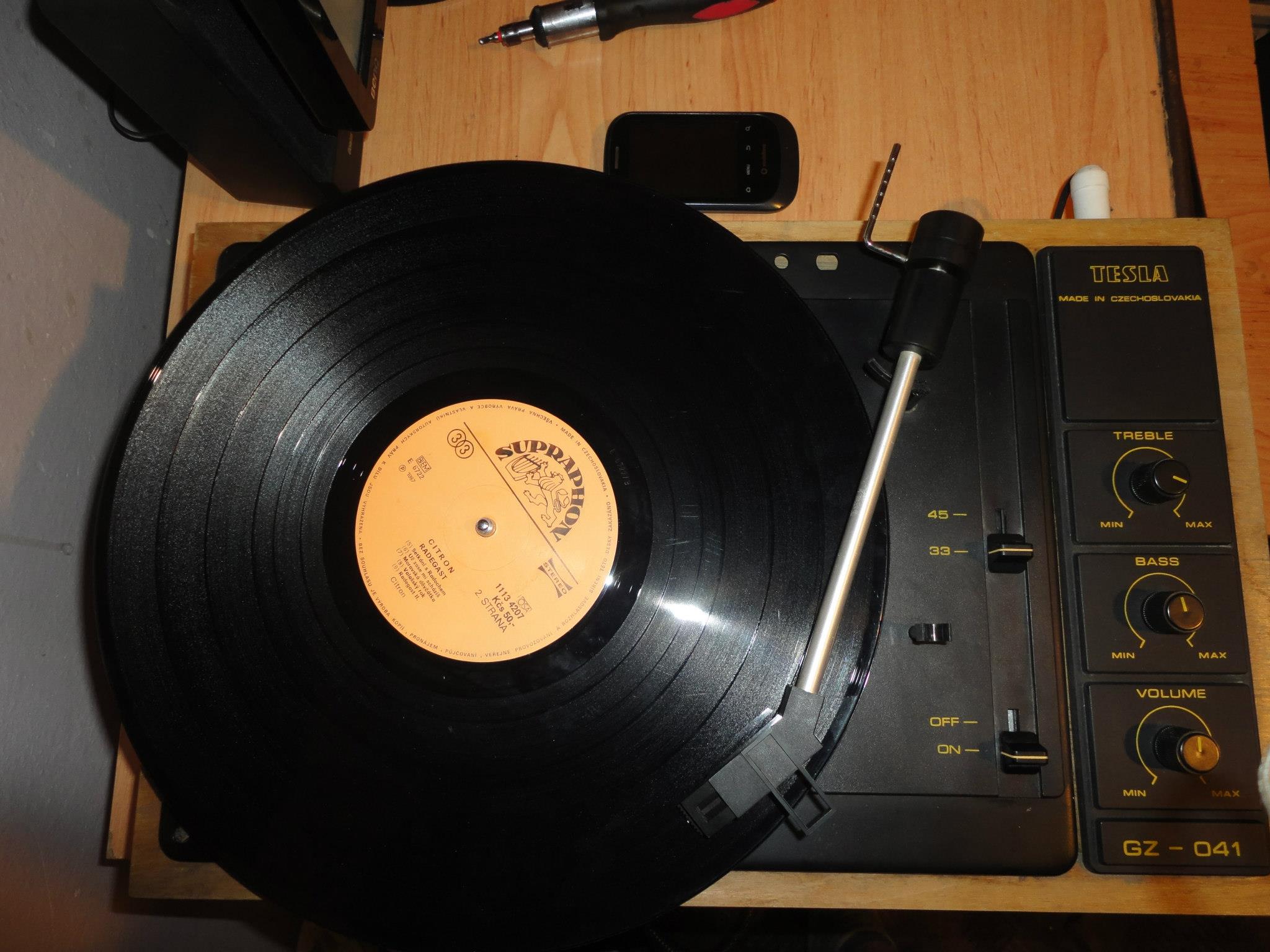 A zrovna měl jít i pryč Gramofón TESLA GZ-041 a učiteli informatiky ho bylo líto tak ho schoval a dal ho mně..