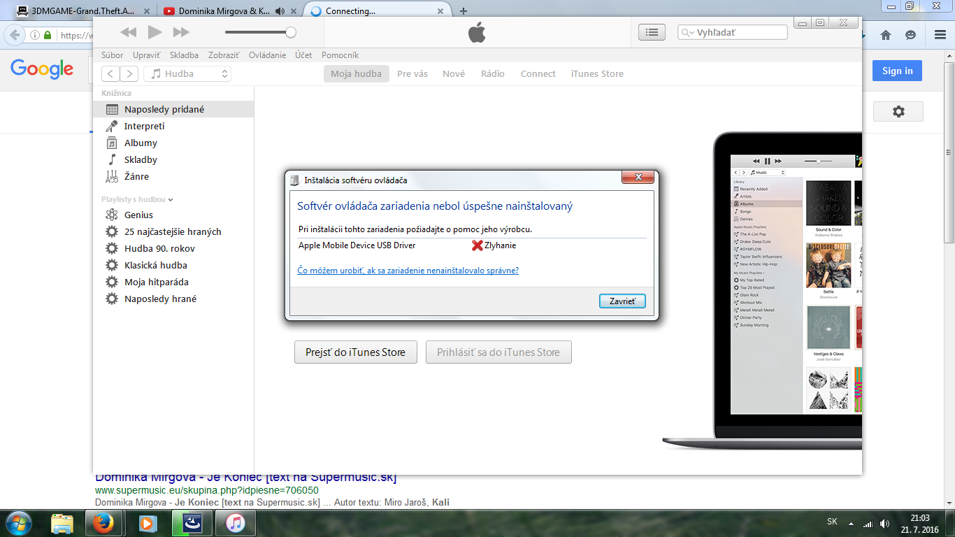 Kúpil som si čisto nový iphone 5s ale mám problém keď zapojím Iphone do pc do usb portu naskočí, že unkown device bolo úspešne nainštalované ale po chvíli vyhodí, že zariadenie nebolo rozpoznané. Skúšal som to aj na NTB (win8) aj na PC (win7).