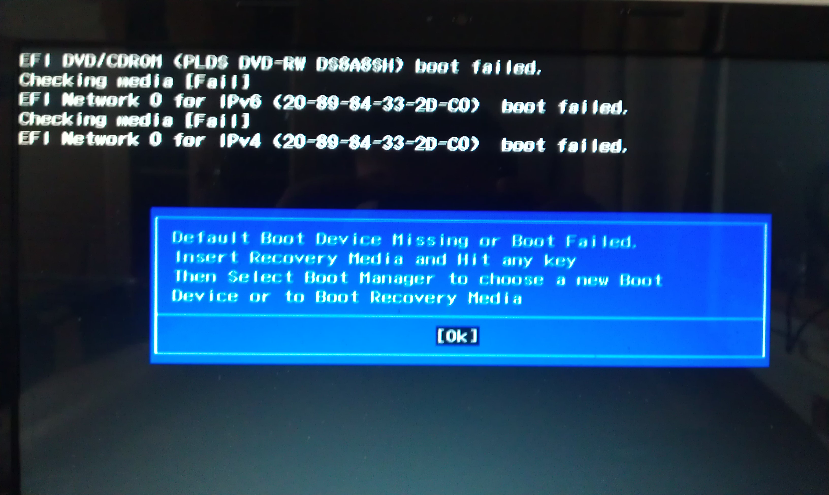Nemá to z čeho bootovat možná vadný hdd