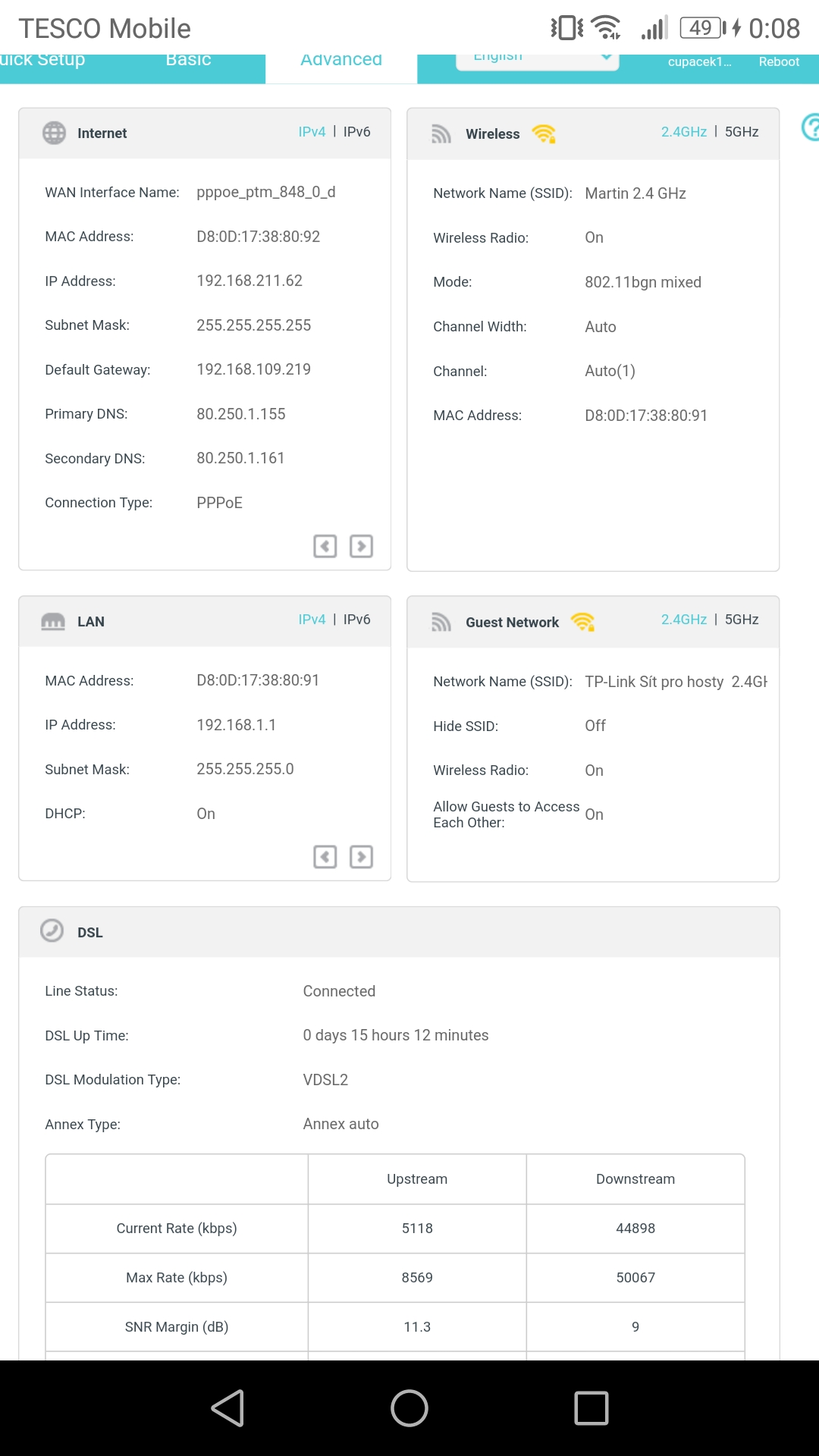 Zatím od nastavení DNS poskytovatele WiFi funguje. Pro jistotu přidám log advanced / status.