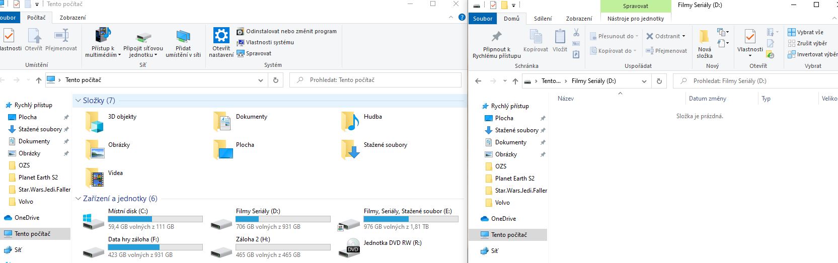 Ahoj stala se mi zajímavá věc. Koupil jsem si nový 2TB Seagate barracuda HDD a přesouval jsem na něj Filmy a Seriály z WD Blue 1TB HDD. Největší chyba byla, že jsem udělal CTRL+X čili jsem rovnou přesouval místo kopírování... Během přesunu na mě vyskočila na konci hláška, že nelze nějaké soubory přesunout, zkoušel jsem opakovat ale hláška skákala dokola, takže jsem dal přeskočit. Poté jsem na 2TB disku měl přesunutu pouze složky "Filmy" ale složka "Seriály" nikde. Mrknu do tento počítač a vidím, že na 1TB disku je ještě 230GB obsazeno tak říkám super, nepřesunulo se to. Otevřu disk a tam žádná složka nic. Zkusil jsem program Recuva ale ten mi na 1TB disku nabízí pouze nějaké ještě starší dokumenty + složku Filmy k obnovení. Ze složky seriály vůbec nic. Na 2TB disku Recuva nenajde taktéž nic. Zkusil jsem ještě hodit disk do jiného PC ale stejně neúspěšně. Disk se tváří, že je na něm 230 GB dat ale pokud se disk otevře není tam nic. Zkoušel jsem dát opravu disku ve WIN 10, defragmentaci ale také to ničemu nepomohlo.
